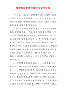 本文(城市基层党建工作经验交流发言) 为本站会员(gzhuahuiban)主动上传, 公文包仅提供信息存储空间,仅对用户上传内容的表现方式做保护处理,对上载内容本身不做任何修改或编辑。 若此文所含内容侵犯了您的版权或隐私,请立即阅读公文包的“ 版权提示”【网址: /about/right.html 】, 按提示上传提交保证函及证明材料,经审查核实后我们立即给予删除!