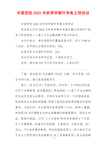本文(市委党校2025年秋季学期开学典主持讲话) 为本站会员(wbkj11)主动上传, 公文包仅提供信息存储空间,仅对用户上传内容的表现方式做保护处理,对上载内容本身不做任何修改或编辑。 若此文所含内容侵犯了您的版权或隐私,请立即阅读公文包的“ 版权提示”【网址: /about/right.html 】, 按提示上传提交保证函及证明材料,经审查核实后我们立即给予删除!