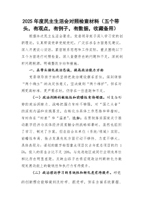 围绕主题深入查摆问题,剖析原因,明确整改措施,提升思想认识和工作能力。下面是网友整理分享的2025年度民主生活会对照检查材料(五个带头,有观点,有例子,有数据,收藏备用)相关资料,供大家学习参考,喜欢就分享吧!
