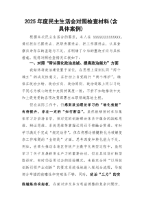 围绕政治思想、工作纪律等方面深入查摆问题,提出整改措施,如何进一步提升?以下是阿拉网友分享的“2025年度民主生活会对照检查材料(口语化具体案例)”,供您学习参考,希望有所用途!