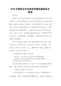 各位同志,今天我们召开座谈会,旨在广泛听取意见,希望大家畅所欲言,共同促进民主生活会质量提升,有何建议?下面是小编为您整理的2025年度民主生活会征求意见座谈会主持词范例,仅供参考,希望对您有所帮助。