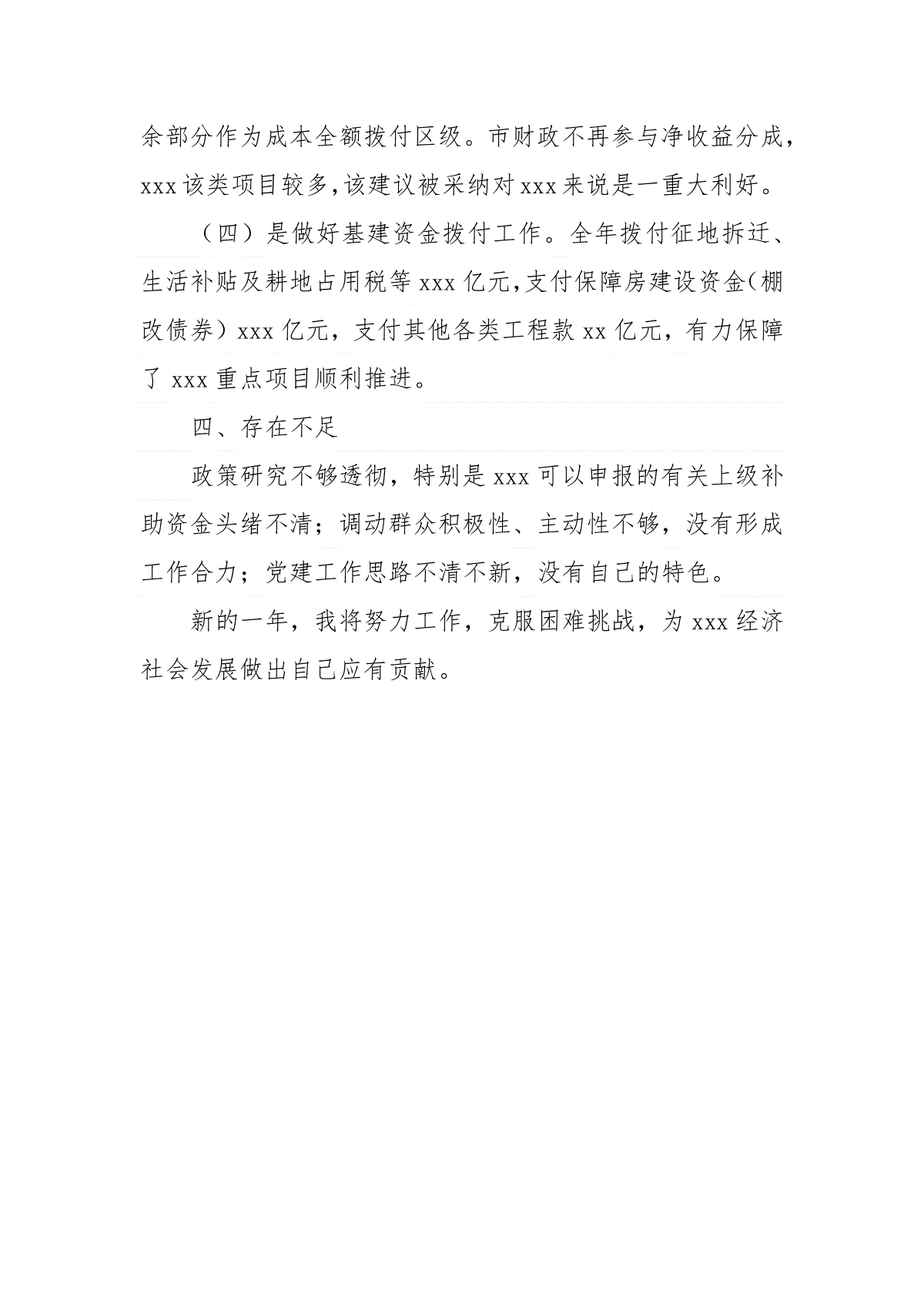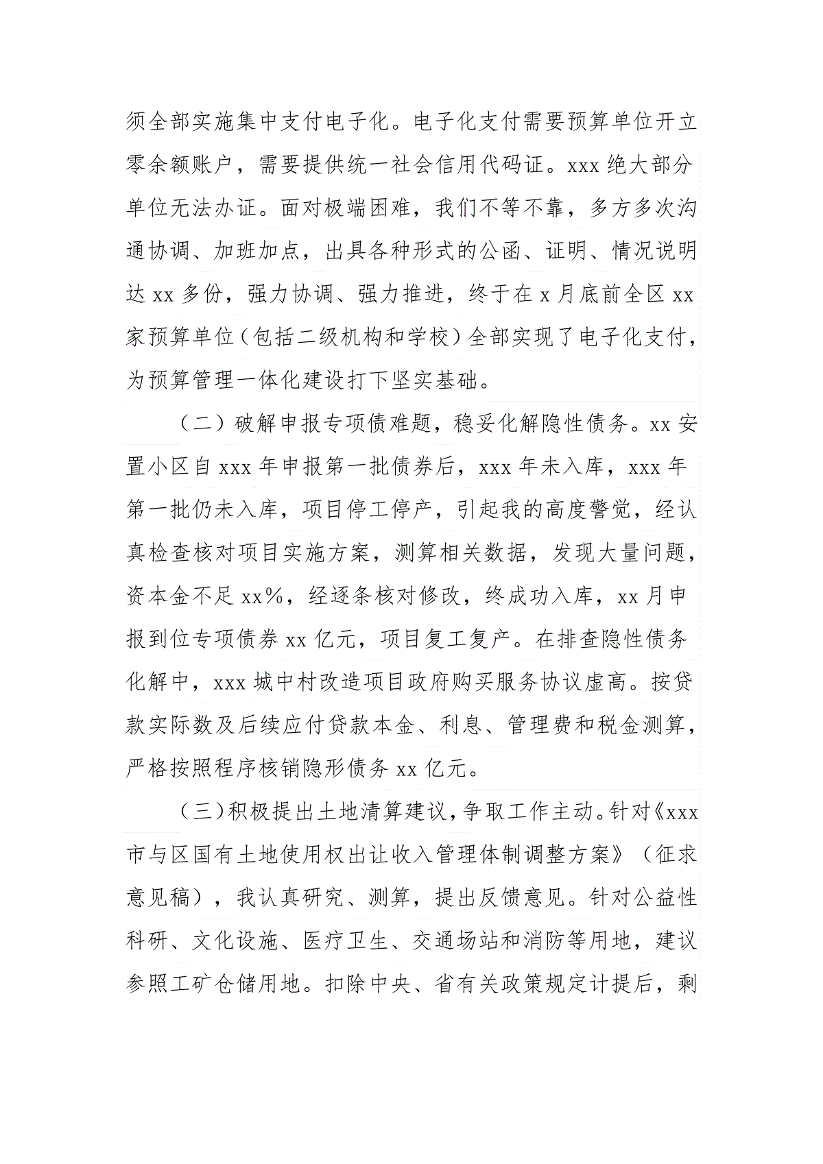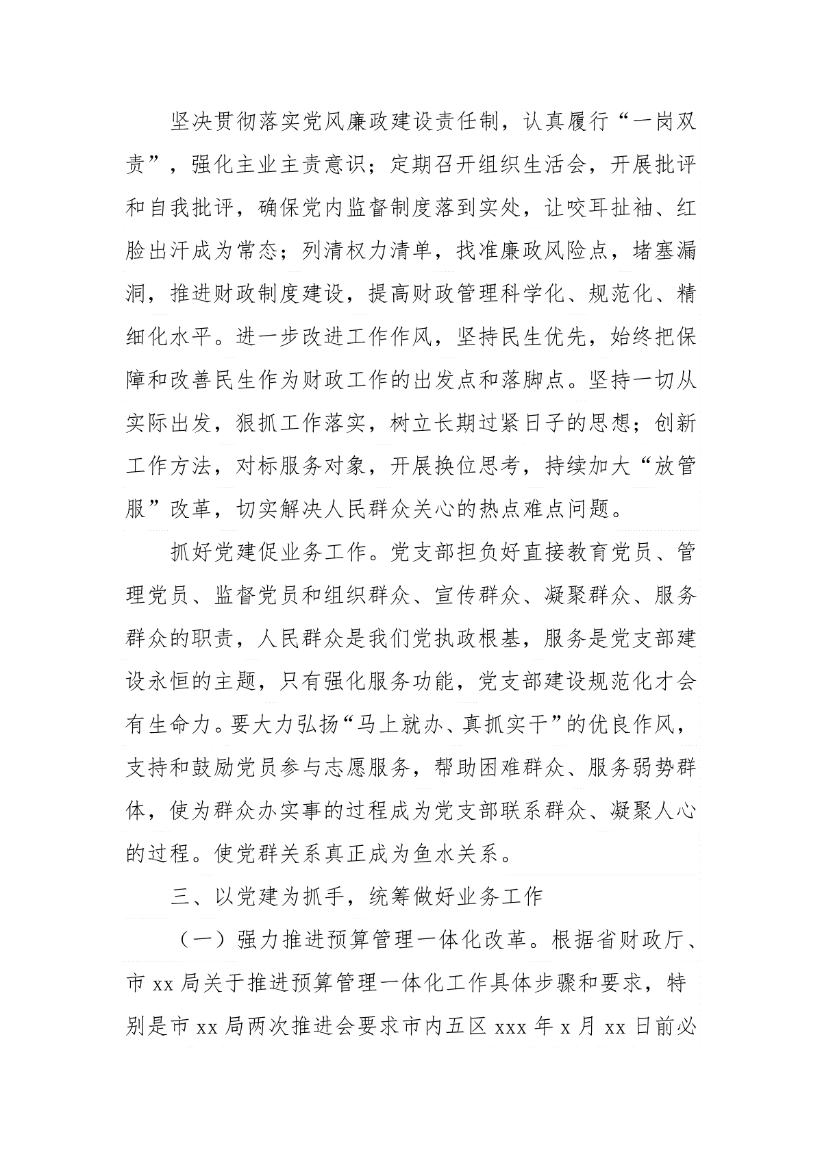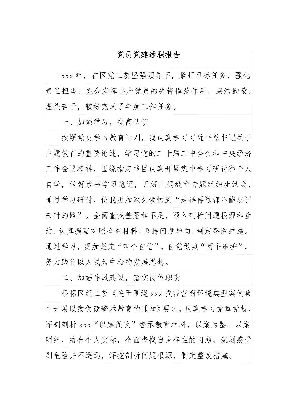 党员党建述职报告xxx年,在区党工委坚强领导下,紧盯目标任务,强化责任担当,充分发挥共产党员的先锋模范作用,廉洁勤政,埋头苦干,较好完成了年度工作任务。一、加强学习,提高认识按照党史学习教育计划,我认真学习习近平总书记关于主题教育的重要论述,学习党的二十届二中全会和中央经济工作会议精神,围绕指定书目认真开展集中学习研讨和个人自学,做好读书学习笔记,开好主题教育专题组织生活会,通过学习研讨,使我更加深刻领悟到“走得再远都不能忘记来时的路”。全面查找差距和不足,深入剖析问题根源和症结,认真撰写对照检查材料,坚持问题导向,制定整改措施。通过学习,更加坚定“四个自信”,自觉做到“两个维护”,努力践行以人民为中心的发展思想。二、加强作风建设,落实岗位职责根据区纪工委《关于围绕xxx损害营商环境典型案例集中开展以案促改警示教育的通知》要求,认真学习党章党规,深刻剖析xxx“以案促改”警示教育材料,以案为鉴、以案明纪,结合个人实际,全面查找自身存在的问题,深刻感受到危险并不遥远,深挖剖析问题根源,制定整改措施。坚决贯彻落实党风廉政建设责任制,认真履行“一岗双责”,强化主业主责意识;定期召开组织生活会,开展批评和自我批评,确保党内监督制度落到实处,让咬耳扯袖、红脸出汗成为常态;列清权力清单,找准廉政风险点,堵塞漏洞,推进财政制度建设,提高财政管理科学化、规范化、精细化水平。进一步改进工作作风,坚持民生优先,始终把保障和改善民生作为财政工作的出发点和落脚点。坚持一切从实际出发,狠抓工作落实,树立长期过紧日子的思想;创新工作方法,对标服务对象,开展换位思考,持续加大“放管服”改革,切实解决人民群众关心的热点难点问题。抓好党建促业务工作。党支部担负好直接教育党员、管理党员、监督党员和组织群众、宣传群众、凝聚群众、服务群众的职责,人民群众是我们党执政根基,服务是党支部建设永恒的主题,只有强化服务功能,党支部建设规范化才会有生命力。要大力弘扬“马上就办、真抓实干”的优良作风,支持和鼓励党员参与志愿服务,帮助困难群众、服务弱势群体,使为群众办实事的过程成为党支部联系群众、凝聚人心的过程。使党群关系真正成为鱼水关系。三、以党建为抓手,统筹做好业务工作(一)强力推进预算管理一体化改革。根据省财政厅、市xx局关于推进预算管理一体化工作具体步骤和要求,特别是市xx局两次推进会要求市内五区xxx年x月xx日前必须全部实施集中支付电子化。电子化支付需要预算单位开立零余额账户,需要提供统一社会信用代码证。xxx绝大部分单位无法办证。面对极端困难,我们不等不靠,多方多次沟通协调、加班加点,出具各种形式的公函、证明、情况说明达xx多份,强力协调、强力推进,终于在x月底前全区xx家预算单位(包括二级机构和学校)全部实现了电子化支付,为预算管理一体化建设打下坚实基础。(二)破解申报专项债难题,稳妥化解隐性债务。xx安置小区自xxx年申报第一批债券后,xxx年未入库,xxx年第一批仍未入库,项目停工停产,引起我的高度警觉,经认真检查核对项目实施方案,测算相关数据,发现大量问题,资本金不足xx%,经逐条核对修改,终成功入库,xx月申报到位专项债券xx亿元,项目复工复产。在排查隐性债务化解中,xxx城中村改造项目政府购买服务协议虚高。按贷款实际数及后续应付贷款本金、利息、管理费和税金测算,严格按照程序核销隐形债务xx亿元。(三)积极提出土地清算建议,争取工作主动。针对《xxx市与区国有土地使用权出让收入管理体制调整方案》(征求意见稿),我认真研究、测算,提出反馈意见。针对公益性科研、文化设施、医疗卫生、交通场站和消防等用地,建议参照工矿仓储用地。扣除中央、省有关政策规定计提后,剩余部分作为成本全额拨付区级。市财政不再参与净收益分成,xxx该类项目较多,该建议被采纳对xxx来说是一重大利好。(四)是做好基建资金拨付工作。全年拨付征地拆迁、生活补贴及耕地占用税等xxx亿元,支付保障房建设资金(棚改债券)xxx亿元,支付其他各类工程款xx亿元,有力保障了xxx重点项目顺利推进。四、存在不足政策研究不够透彻,特别是xxx可以申报的有关上级补助资金头绪不清;调动群众积极性、主动性不够,没有形成工作合力;党建工作思路不清不新,没有自己的特色。新的一年,我将努力工作,克服困难挑战,为xxx经济社会发展做出自己应有贡献。