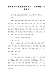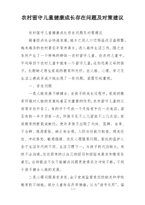 农村留守儿童面临教育不足、心理健康问题及安全风险,需加强家庭关爱、学校支持与社会保护措施。以下是小编为您整理分享的“农村留守儿童健康成长存在问题及对策建议”相关内容,供您学习参考!