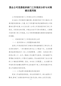 国企公司党委组织部门工作需加强规范性与创新性,提升效能,强化培训,优化结构,增强服务意识。下面网友分享多篇相关内容供您参考学习,希望有您喜欢的。