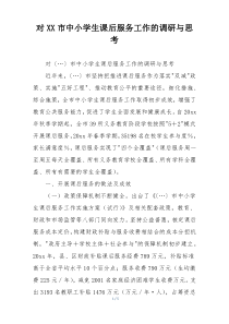 通过对XX市中小学生课后服务工作的调研发现,服务内容丰富多样,但仍需加强师资力量与安全保障!公文包网友为您分享整理的“对XX市中小学生课后服务工作的调研与思考”范文资料,以供您参考学习之用,希望喜欢。