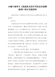乡镇干部深入学习厉行节约反对浪费规定,交流心得体会,探讨实际应用,提升节俭意识与行动力。公文包网友为您分享整理的“乡镇干部学习《党政机关厉行节约反对浪费条例》研讨交流材料”范文资料,以供您参考学习之用,希望喜欢。