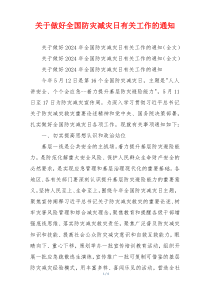 要求各地加强宣传教育,提高全民防灾减灾意识,强化应急准备和隐患排查,确保措施落实到位。以下由网友整理分享的关于做好全国防灾减灾日有关工作的通知相关文档,供您学习参考,喜欢就分享吧!