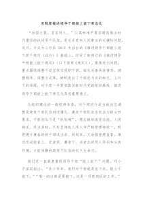 通过完善制度机制,促进领导干部队伍动态调整,确保能者上、庸者下,如何更有效实施?以下是小编为您整理分享的“用制度推进领导干部能上能下常态化20XX11”相关内容,供您学习参考!