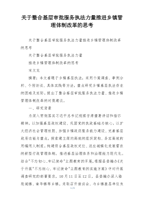 整合基层审批服务执法力量,优化资源配置,提升乡镇管理效能,促进治理体系和治理能力现代化。下面网友分享多篇相关内容供您参考学习,希望有您喜欢的。