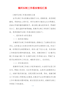 镇河长制工作稳步推行,各级河长积极履职,河流治理成效显著,水环境质量持续改善。下面是网友整理分享的镇河长制工作落实情况汇报相关资料,供大家学习参考,喜欢就分享吧!