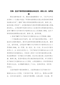 党的创新理论是全党行动指南,教育人民核心价值,指导实践关键所在,如何更好地贯彻执行?下面是小编为您整理的党课:坚定不移用党的创新理论武装全党、教育人民、指导实践(优秀)范例,仅供参考,希望对您有所帮助。