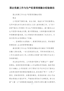 国企通过强化党组织领导作用,优化决策流程,激发员工积极性,促进党建与生产经营深度融合,实现共同发展。下面是网友整理编辑的国企党建工作与生产经营深度融合经验做法相关范文,供大家参考学习,喜欢就下载支持!