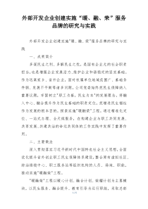 外部开发企业通过创建实施“暖、融、荣”服务品牌,提升了服务质量,增强了客户满意度,促进了企业发展。以下由网友整理分享的外部开发企业创建实施“暖、融、荣”服务品牌的研究与实践相关文档,供您学习参考,喜欢就分享吧!