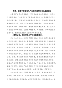 全面从严治党,深化党风廉政建设,强化纪律约束,铸就忠诚干净担当队伍,永葆党的先进性纯洁性!以下是小编为您整理分享的“党课:坚定不移全面从严治党持续深化党风廉政建设(优秀)”相关内容,供您学习参考!