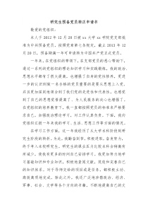 申请人表达了对党的忠诚与热爱,承诺继续努力学习和工作,积极贡献社会力量,争取早日成为正式党员!下面是小编为您整理的研究生预备党员转正申请书范例,仅供参考,希望对您有所帮助。
