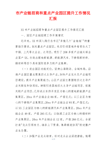 市产业链招商成效显著,重点产业园区升级稳步推进,如何进一步优化提升?以下是小编为您整理分享的“市产业链招商和重点产业园区提升工作情况汇报”相关内容,供您学习参考!