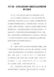 政协参与基层社会治理需加强制度建设,提高委员履职能力,拓宽协商渠道,深化民主监督,促进社会和谐。以下是阿拉网友分享的“关于进一步优化政协参与基层社会治理的调研与思考”,供您学习参考,希望有所用途!