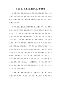 建设清廉家风对促进教育整顿意义深远,如何更好地将两者结合,发挥家庭在廉洁教育中的作用?以下是小编为您整理分享的“研讨发言以建设清廉家风助力教育整顿”相关内容,供您学习参考!