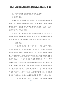 强化机构编制基础数据管理需完善制度体系,提升信息化水平,加强数据分析应用,确保数据安全准确。下面网友分享多篇相关内容供您参考学习,希望有您喜欢的。