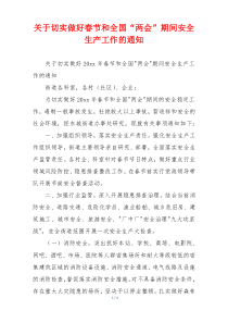 要求加强春节期间及全国两会期间安全生产管理,确保各项安全措施落实到位,防范事故发生。下面是网友整理编辑的关于切实做好春节和全国“两会”期间安全生产工作的通知相关范文,供大家参考学习,喜欢就下载支持!