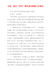 中秋国庆期间各地加强信访维稳措施,确保社会和谐稳定,民众诉求得到有效处理,成效如何?以下由公文包网友为您分享的范文资料,供您参考学习之用。