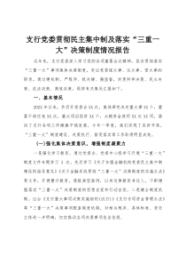 支行党委严格执行民主集中制,落实“三重一大”决策制度,确保决策科学民主。以下由公文包网友为您分享的范文资料,供您参考学习之用。