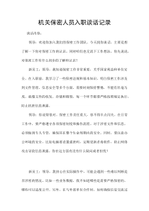 机关保密人员入职时进行了谈话,强调了保密工作的重要性,明确了相关责任与义务,要求严格遵守保密规定。以下是小编为您整理分享的“机关保密人员入职谈话记录(材料)”相关内容,供您学习参考!