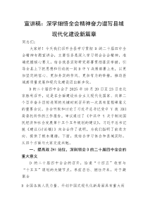 深入学习领会全会精神,紧密结合县域实际,推动高质量发展,谱写新时代篇章。下面是小编为您整理的(整理)宣讲稿:深学细悟全会精神+奋力谱写县域现范例,仅供参考,希望对您有所帮助。