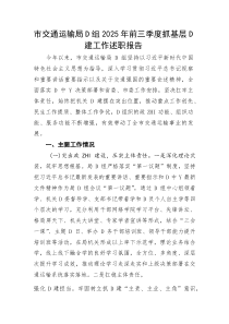 市交通运输局党组持续强化基层党建,推进组织建设,提升党员素质,深化服务群众,增强党组织凝聚力战斗力。下面是小编为您整理的(整理)市交通运输局党组2025年前三季度抓基层党建工作述职报告范例,仅供参考,希望对您有所帮助。