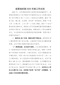 县委组织部围绕党建引领强化队伍建设,提升干部素质,优化人才结构,推动基层治理创新,取得显著成效。下面是小编为您整理的(整理)县委组织部2025年度工作总结范例,仅供参考,希望对您有所帮助。