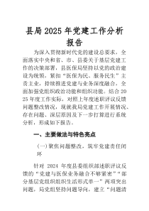县局党建工作持续推进,强化组织建设,提升党员素质,增强服务意识,推动各项任务落实见效。以下是阿拉网友分享的“(整理)县局2025年党建工作分析报告”,供您学习参考,希望有所用途!