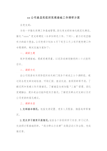 针对xx公司基层党组织党建基础工作开展调研,旨在了解现状、发现问题、提出改进建议,如何确保调研全面有效?以下由网友整理分享的xx公司基层党组织党建基础工作调研方案相关文档,供您学习参考,喜欢就分享吧!
