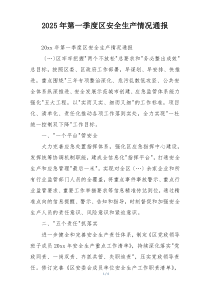 一季度全区安全生产形势总体稳定,未发生重大安全事故,但仍存在部分隐患需进一步整治。下面是网友整理编辑的2025年第一季度区安全生产情况通报相关范文,供大家参考学习,喜欢就下载支持!