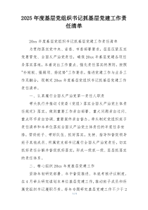 明确基层党组织书记职责,强化党建引领,推进组织建设,提升服务效能,确保工作落实到位。以下由网友整理分享的“2025年度基层党组织书记抓基层党建工作责任清单”相关材料,便您学习参考,喜欢就分享给朋友吧!