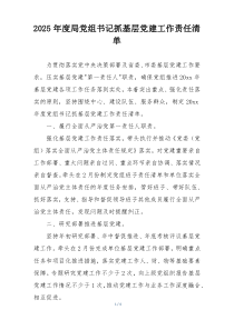 明确党建责任,强化组织建设,提升党员素质,推动基层治理创新。下面是网友整理分享的2025年度局党组书记抓基层党建工作责任清单相关资料,供大家学习参考,喜欢就分享吧!