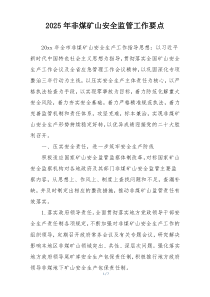 加强非煤矿山安全监管体系建设,提升风险防控能力,强化技术支撑与应急响应,推动智能化管理。下面是网友整理分享的2025年非煤矿山安全监管工作要点相关资料,供大家学习参考,喜欢就分享吧!