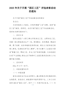 为弘扬工匠精神,提升园区职工技能水平,决定开展评选表彰活动。公文包网友为您分享整理的“2025年关于开展“园区工匠”评选表彰活动的通知”范文资料,以供您参考学习之用,希望喜欢。