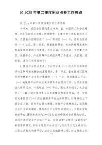 围绕主导产业精准招商,优化营商环境,强化项目落地服务,推动高质量发展。下面是小编为您整理的区2025年第二季度招商引资工作思路范例,仅供参考,希望对您有所帮助。
