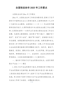 推进法治建设 加强立法执法 完善监督机制 提升市民法律意识 依法治市成效显著!公文包网友为您分享整理的“全面依法治市2025年工作要点”范文资料,以供您参考学习之用,希望喜欢。