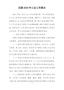 纪委工会将聚焦服务职工、提升素质、维护权益、促进和谐,推动各项工作创新发展,具体措施如何落实?公文包网友为您分享整理的“纪委2025年工会工作要点”范文资料,以供您参考学习之用,希望喜欢。