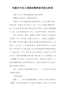 深入学习中央八项规定精神,提升思想认识,强化作风建设,共同营造风清气正的良好氛围!下面是小编为您整理的市委办中央八项规定精神读书班主持词范例,仅供参考,希望对您有所帮助。