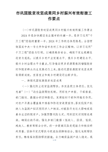 加强政策支持 优化产业布局 推进基础设施建设 强化人才支撑 完善社会保障体系 加大资金投入力度 深化改革激发活力下面是网友整理编辑的市巩固脱贫攻坚成果同乡村振兴有效衔接工作要点相关范文,供大家参考学习,喜欢就下载支持!