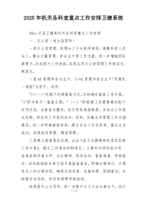 加强公共卫生体系建设,提升医疗服务水平,推进健康信息化发展,深化医药卫生体制改革!以下由网友整理分享的“2025年机关各科室重点工作安排卫健系统”相关材料,便您学习参考,喜欢就分享给朋友吧!