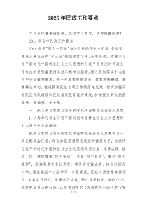 加强社会救助体系建设,推进养老服务发展,深化社区治理创新,提升公共服务水平,如何更好地服务民生?以下由网友整理分享的“2025年民政工作要点”相关材料,便您学习参考,喜欢就分享给朋友吧!