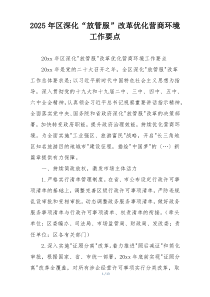 深化行政审批制度改革,加强事中事后监管,提升政务服务效能,激发市场活力和社会创造力!以下由网友整理分享的“2025年区深化“放管服”改革优化营商环境工作要点”相关材料,便您学习参考,喜欢就分享给朋友吧!