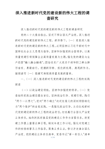 新时代党的建设伟大工程需持续深化,通过调查研究,探索新路径,强化党的领导,提升治理效能。下面是网友整理编辑的深入推进新时代党的建设新的伟大工程的调查研究相关范文,供大家参考学习,喜欢就下载支持!