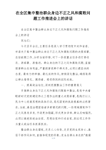 会议强调深入整治不正之风和腐败问题,加强监督执纪,提升群众满意度,如何确保措施落实到位?以下由网友整理分享的“在全区集中整治群众身边不正之风和腐败问题工作推进会上的讲话”相关材料,便您学习参考,喜欢就分享给朋友吧!
