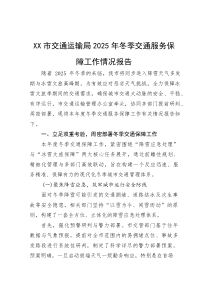 市交通运输局加强冬季交通服务保障,确保道路畅通,提升公共交通服务质量,增强应急响应能力。以下由网友整理分享的“市交通运输局2025年冬季交通服务保障工作情况报告(参考)”相关材料,便您学习参考,喜欢就分享给朋友吧!