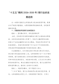 数字化转型加速,绿色金融和普惠金融成为重点发展方向,银行业将如何应对这些变化?下面是网友整理分享的(新编)十五五期间(2026-2030年)银行业的发展趋势相关资料,供大家学习参考,喜欢就分享吧!