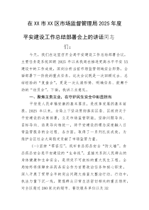 总结过去经验,部署未来任务,强化市场监管,保障市民权益,如何更好地推进平安建设工作?以下是小编为您整理分享的“在XX市XX区市场监督管理局2025年度平安建设工作总结部署会上的讲话(资料)”相关内容,供您学习参考!